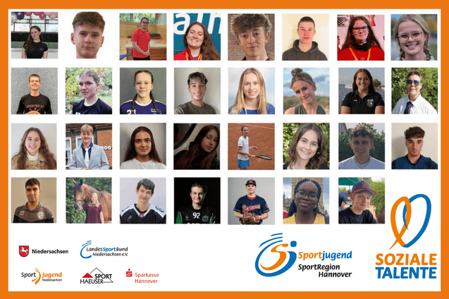 Die 32 Nominierten für den Wettbewerb „Soziale Talente 2025“ der Sportjugenden der SportRegion Hannover – der Sportjugend des Regionssportbundes (RSB)…