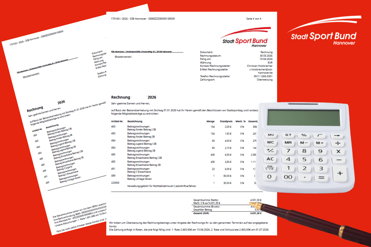 Der LSB-Beitrag ist unverändert geblieben. Wie bisher wird der Rechnungsbetrag zudem in zwei Raten aufgeteilt, sofern er insgesamt über 1.000 € liegt.