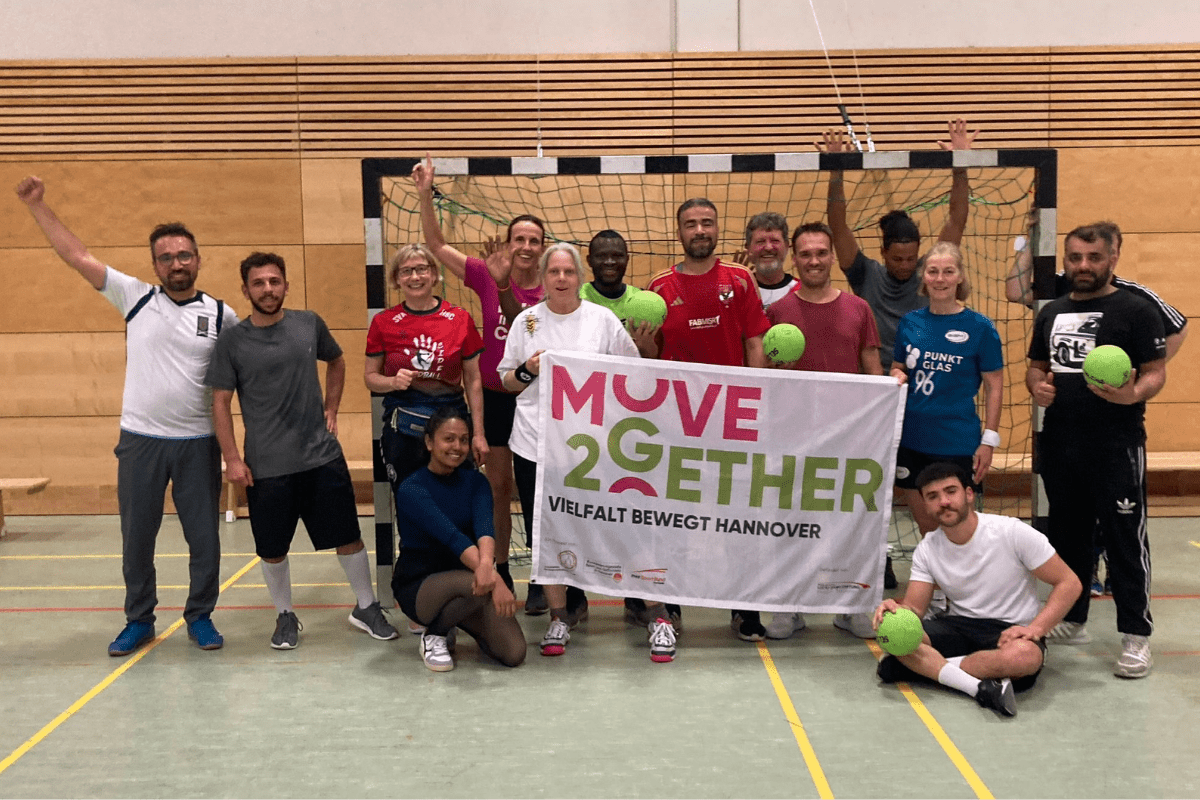 Bereits über 50 Aktionen hat das Team um Unda Karlshaus vom UFU in 2025 umgesetzt: Ob gemeinsam das Deutsche Sportabzeichen zu absolvieren, bei der SG 74 Beach-Tennis oder im Georgengarten Fußball zu spielen – das Projekt Move2gether bewegt Menschen in Hannover.
