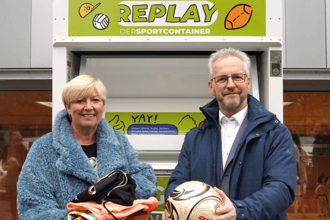Der Container ist Bestandteil des Nachhaltigkeitsprojektes „Replay – der Sportcontainer“, eine Kooperation zwischen dem Fachbereich Sport, Bäder und Eventmanagement der Stadt und dem Secondhand-Kaufhaus fairKauf eG. In dem Container werden gebrauchte aber gut erhaltene Sportbekleidung und -geräte gesammelt, anschließend von fairKauf aufbereitet und zu kostengünstigen Preisen in deren Secondhand-Kaufhäusern wieder verkauft. Sportbegeisterte mit begrenztem Budget können somit von der Wiederverwertung profitieren und gleichzeitig etwas für die Umwelt tun.