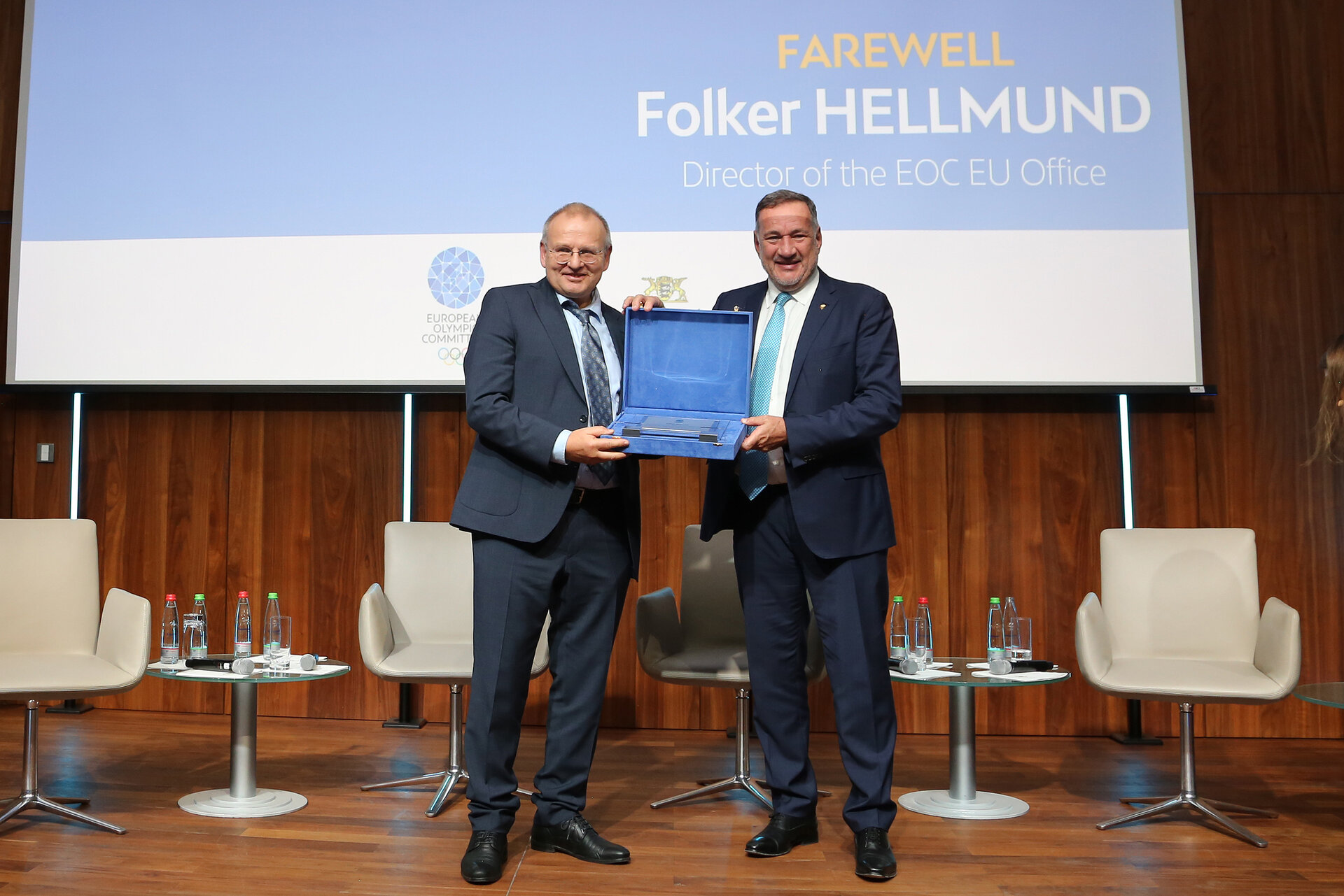 Auf einer sportpolitischen Veranstaltung dieser Tage der neuen IOC-Präsidentin die Show zu stehlen - das muss man erst einmal schaffen. Kein Wunder also, dass dem Mann, dem dieses Kunststück gelang, am Montagabend kurzzeitig die Stimme versagte. Ob vor Rührung oder weil er sich für zu viele Glückwünsche bedanken musste, war nicht ganz klar. Aber Folker Hellmund war heiser, als er sein Team aus dem Brüsseler EU-Büro des Europäischen Olympischen Komitees (EOC) auf der Bühne für ein Erinnerungsfoto aufzustellen versuchte. „Es waren die Menschen, mit denen ich arbeiten durfte, die diesen Posten so besonders gemacht haben. Ich bin sehr dankbar für diese Zeit“, sagte der 64-Jährige, nachdem er von den rund 350 geladenen Gästen bei seinem letzten offiziellen Auftritt als Büroleiter mit Standing Ovations gefeiert worden war. Ende März kommenden Jahres geht Folker Hellmund in den Ruhestand.