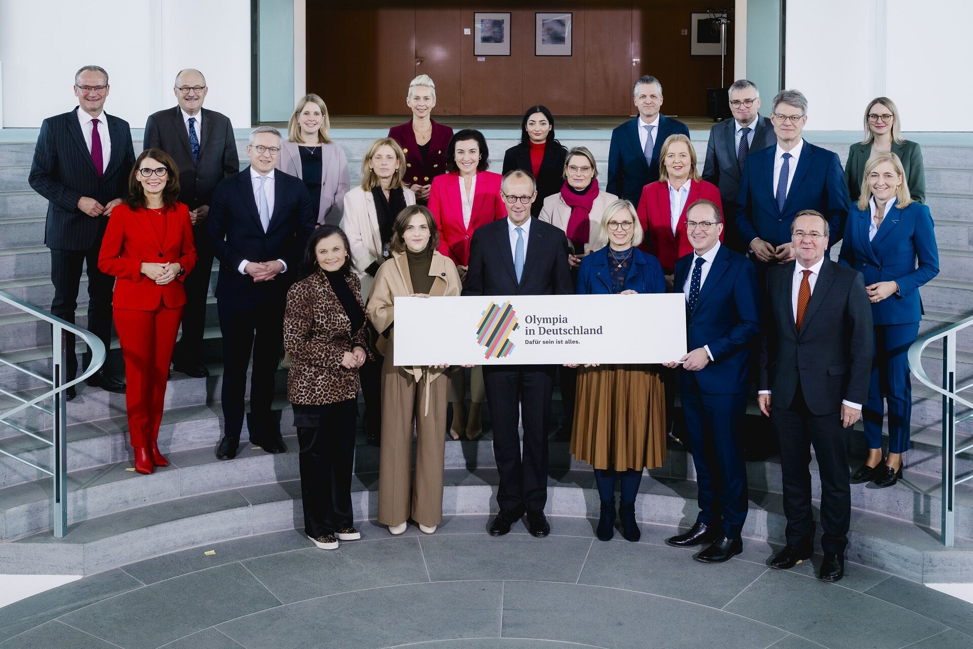 Die Bundesregierung steht geschlossen hinter der deutschen Bewerbung für die Ausrichtung Olympischer und Paralympischer Spiele. Am Mittwoch beschloss das Bundeskabinett, bestehend aus Kanzler Friedrich Merz und den 17 Bundesministerinnen und -ministern, die Unterzeichnung einer „Politischen Vereinbarung zu einer deutschen Bewerbung um Olympische und Paralympische Spiele“. Dieses sogenannte Memorandum of Understanding soll am 4. Dezember von Merz, DOSB-Präsident Thomas Weikert, den Ministerpräsidenten von Bayern und Nordrhein-Westfalen, Markus Söder (CSU) und Hendrik Wüst (CDU), dem Regierenden Bürgermeister von Berlin, Kai Wegner (CDU), dem Ersten Bürgermeister der Freien und Hansestadt Hamburg, Peter Tschentscher (SPD), und dem Oberbürgermeister der Stadt München, Dieter Reiter (SPD), unterzeichnet werden.